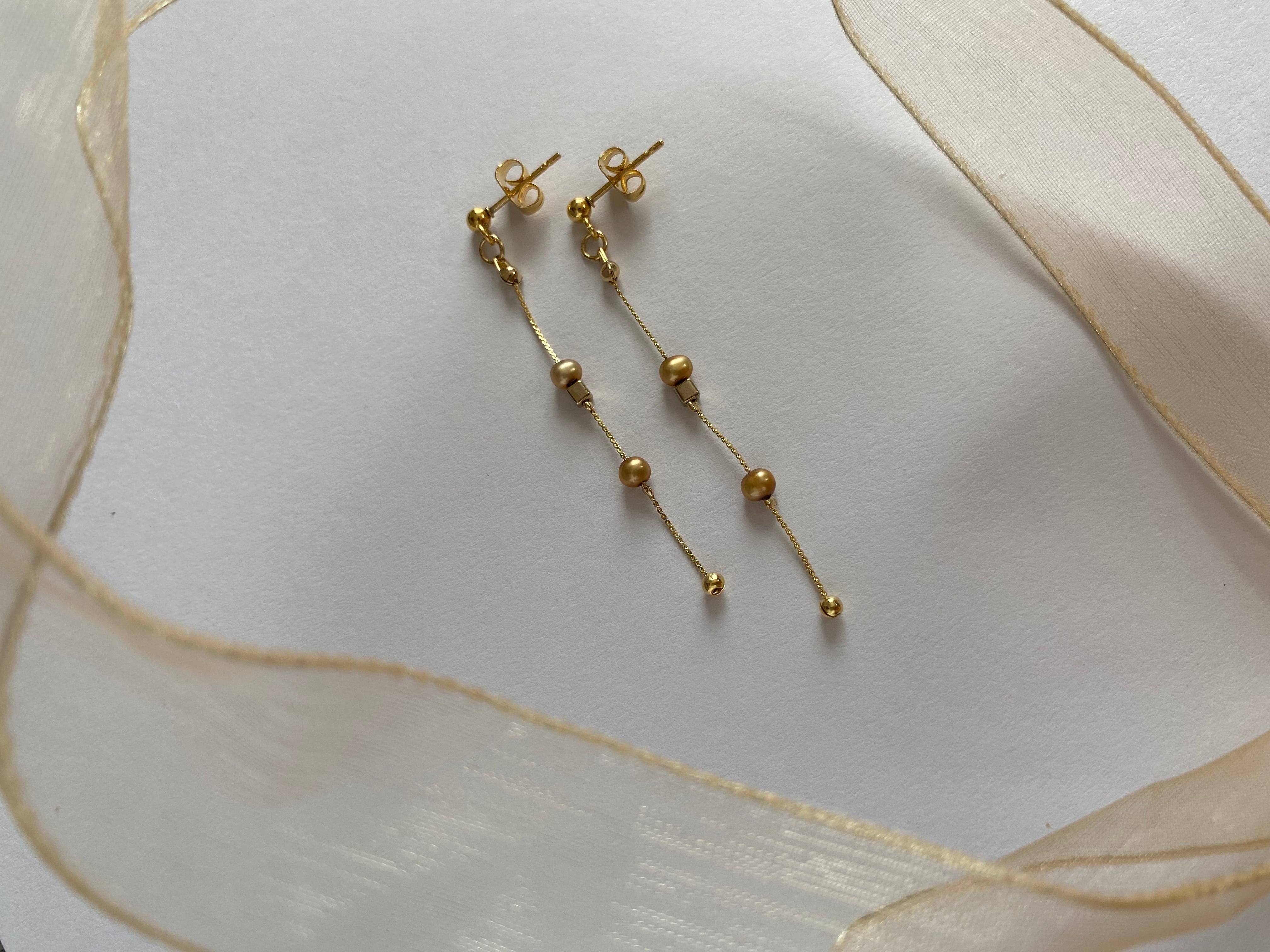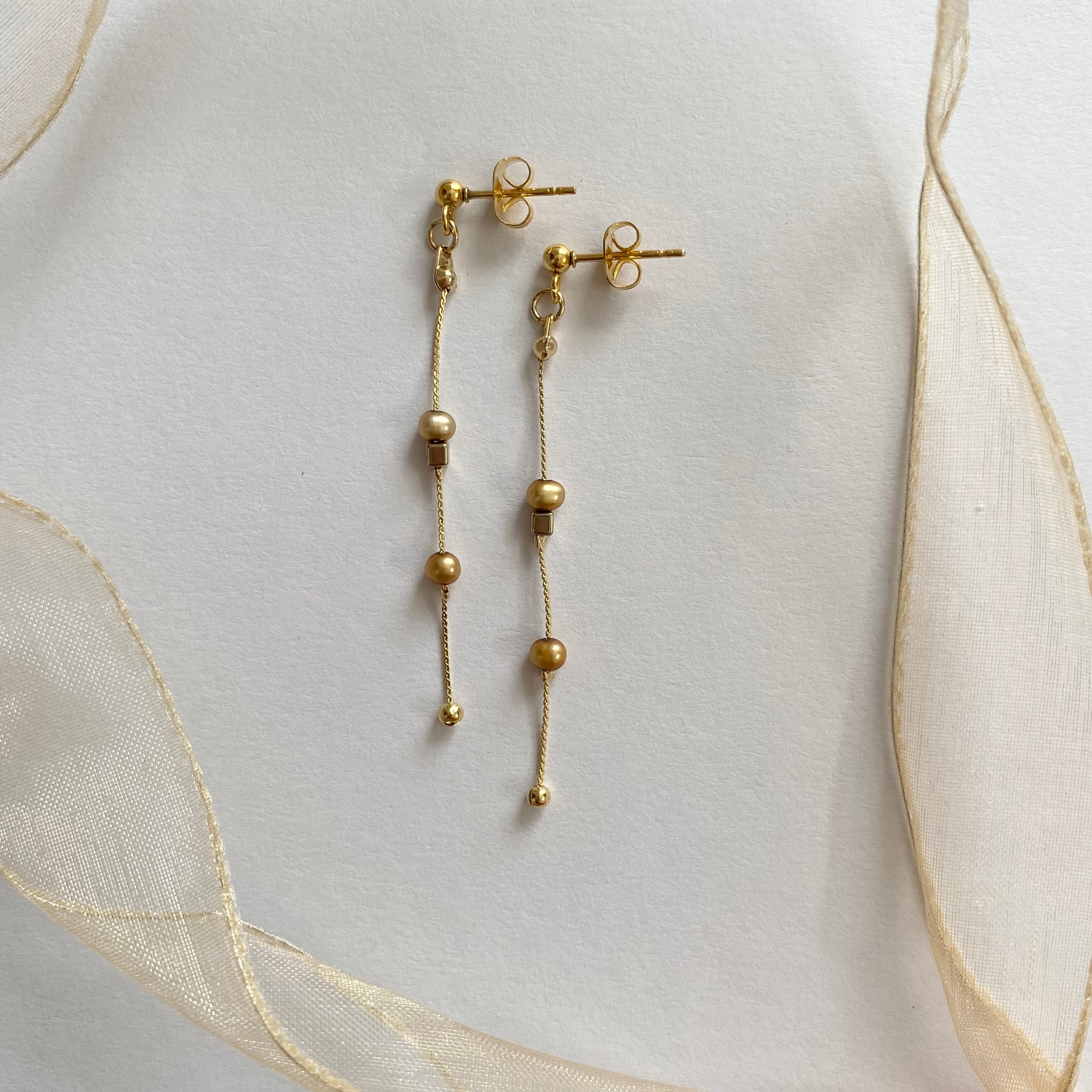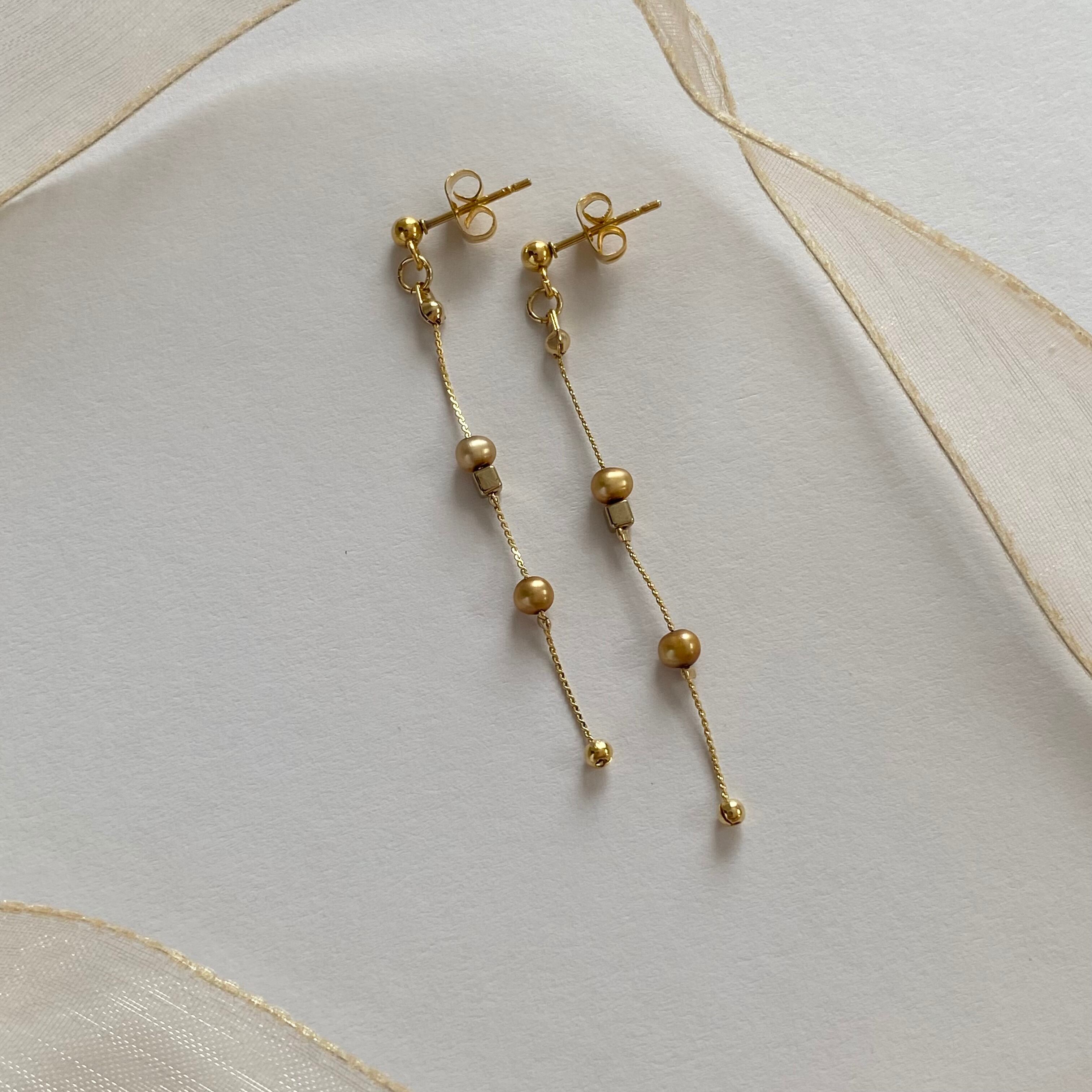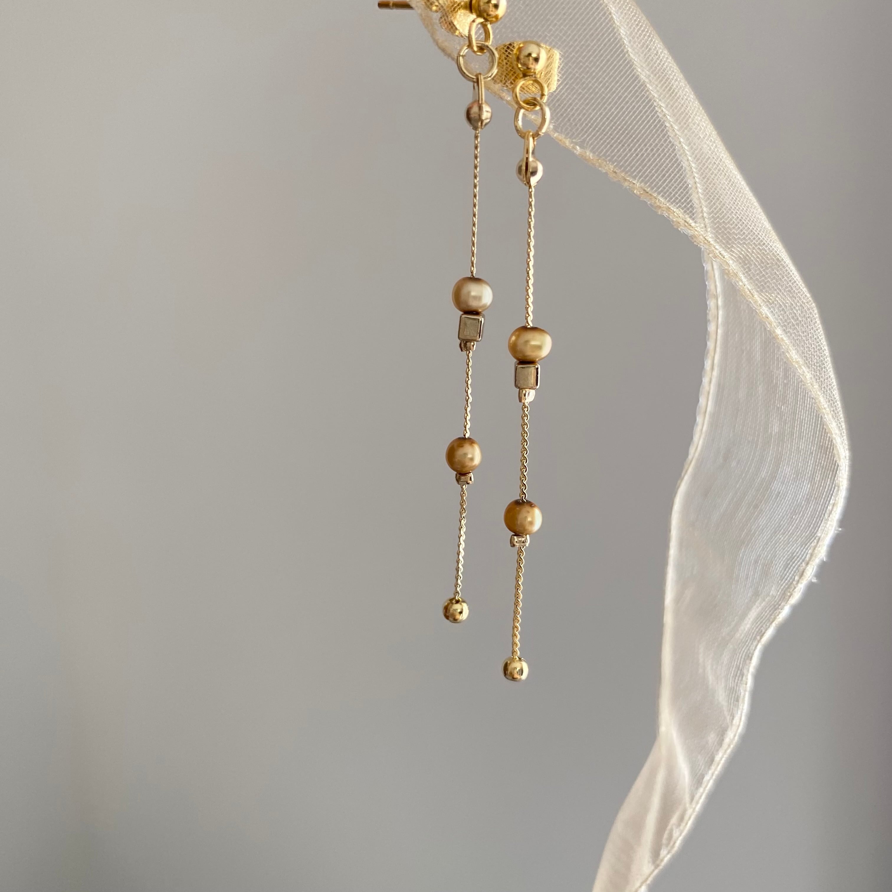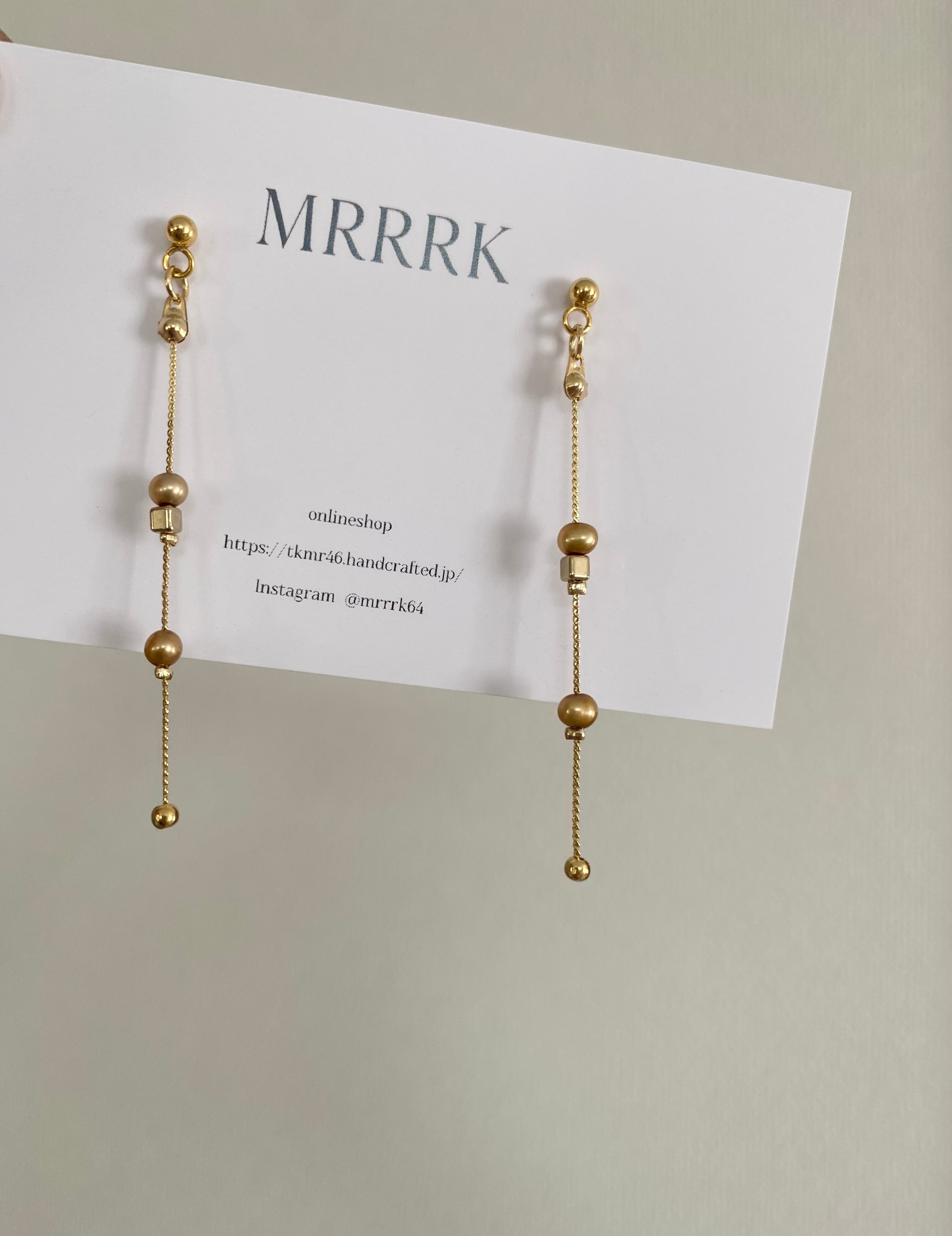 超小粒ブラウンカラーの淡水パールを使用した秋ピアス。