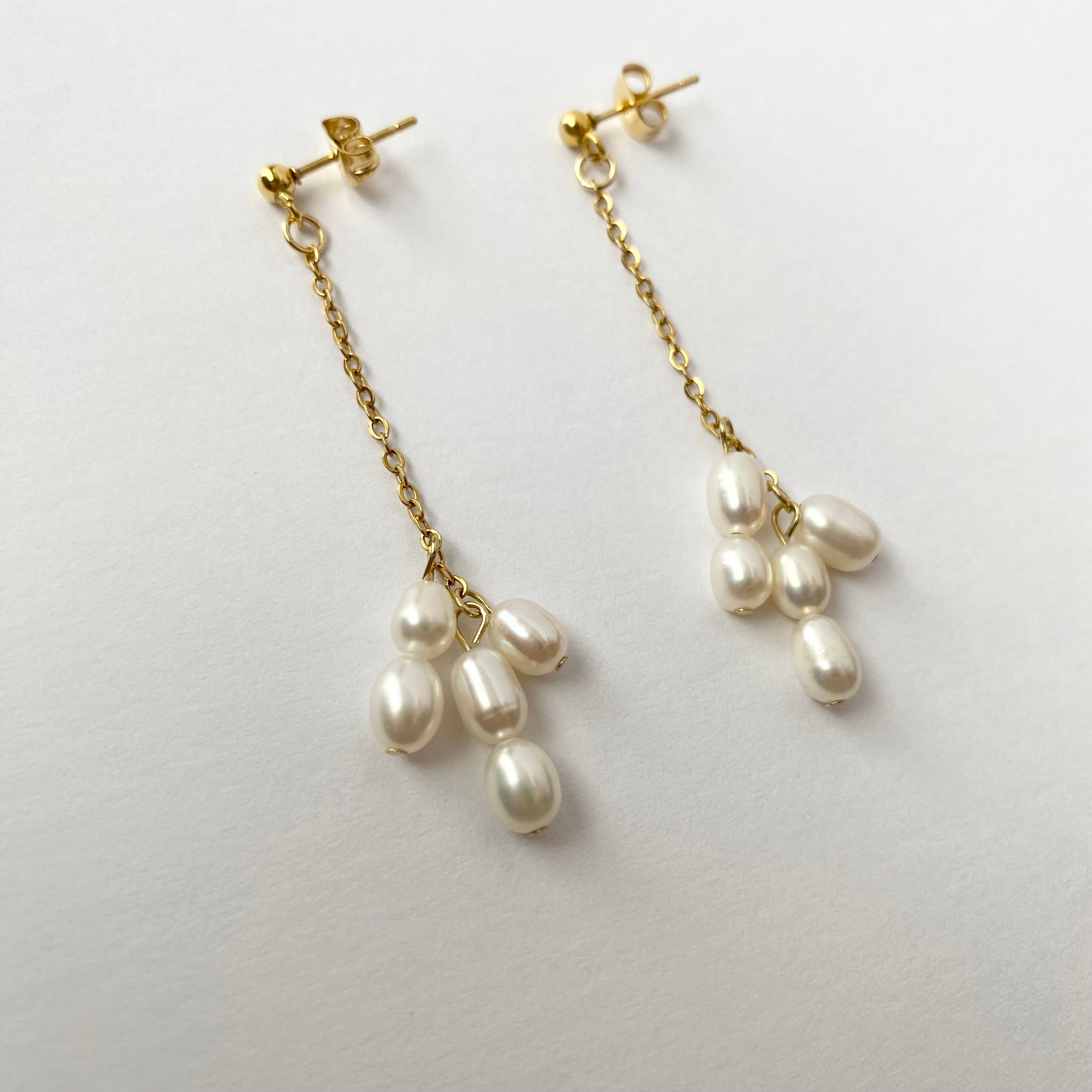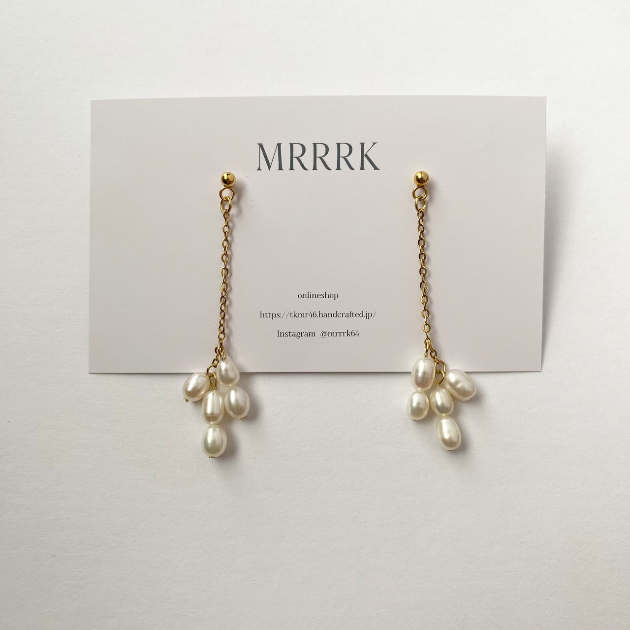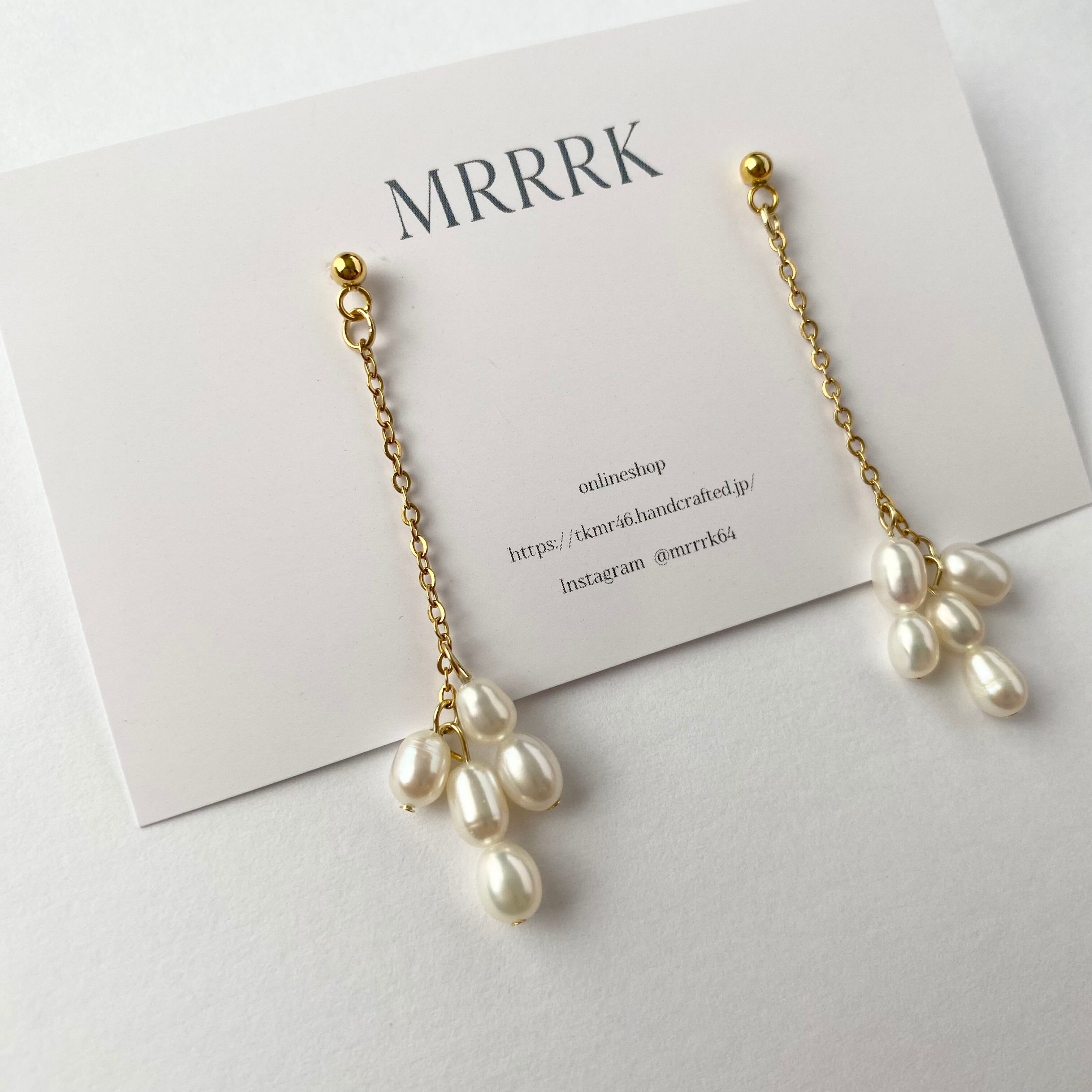 こぼれるパールの雫 チタン、イヤリング 変更可 ライスパール 淡水パール サージカルステンレス 入学式 卒業式 バレンタイン
