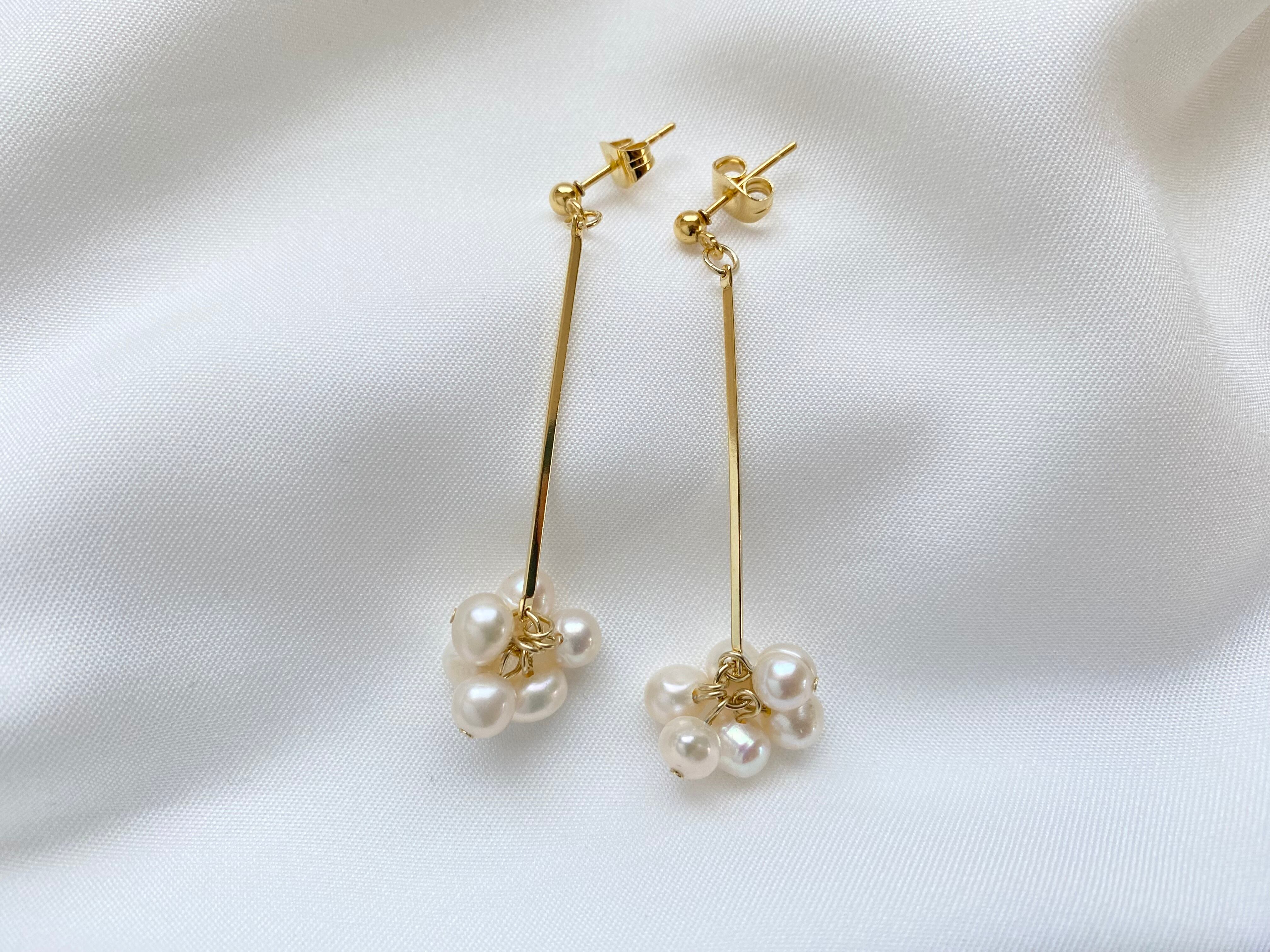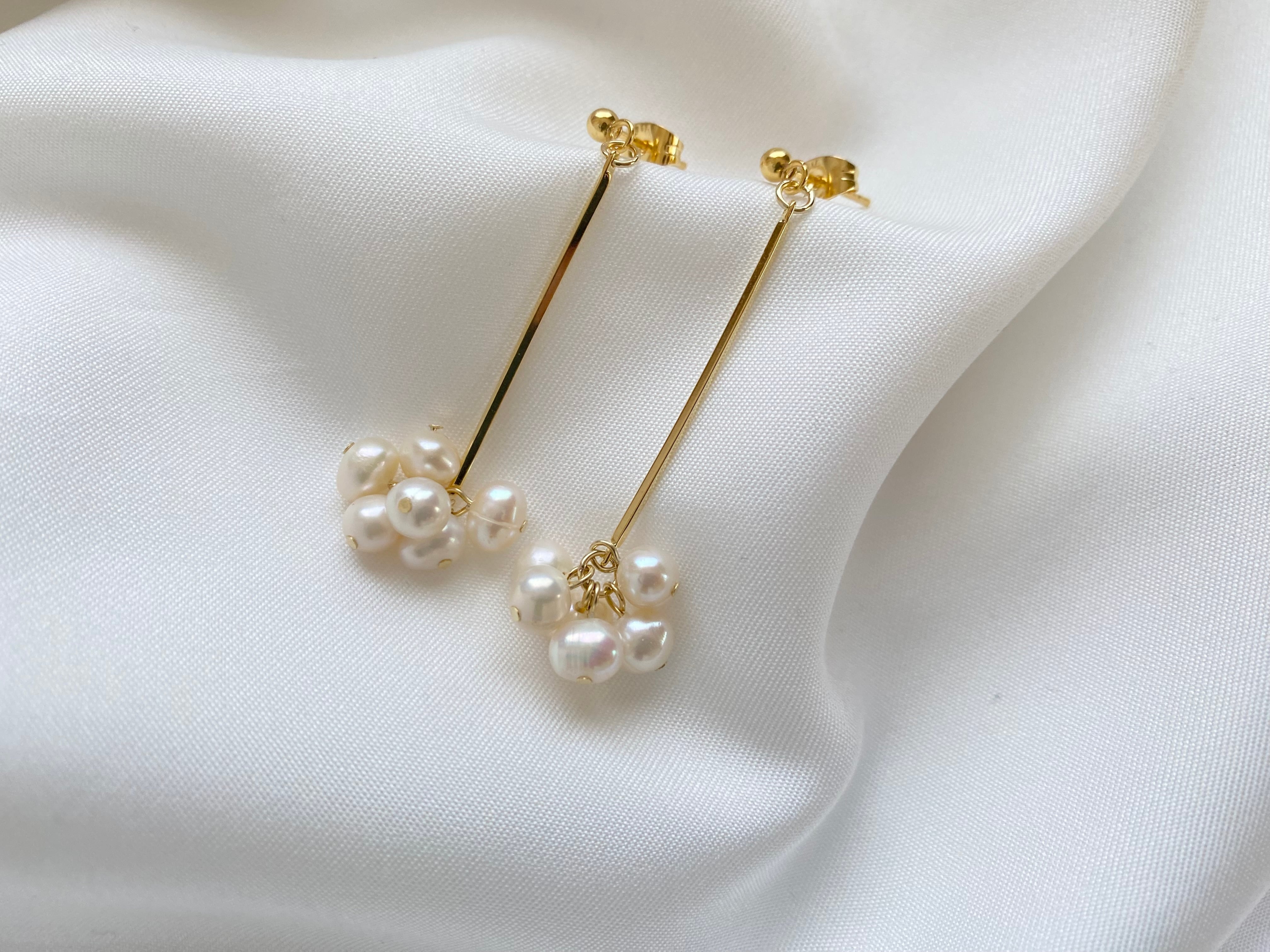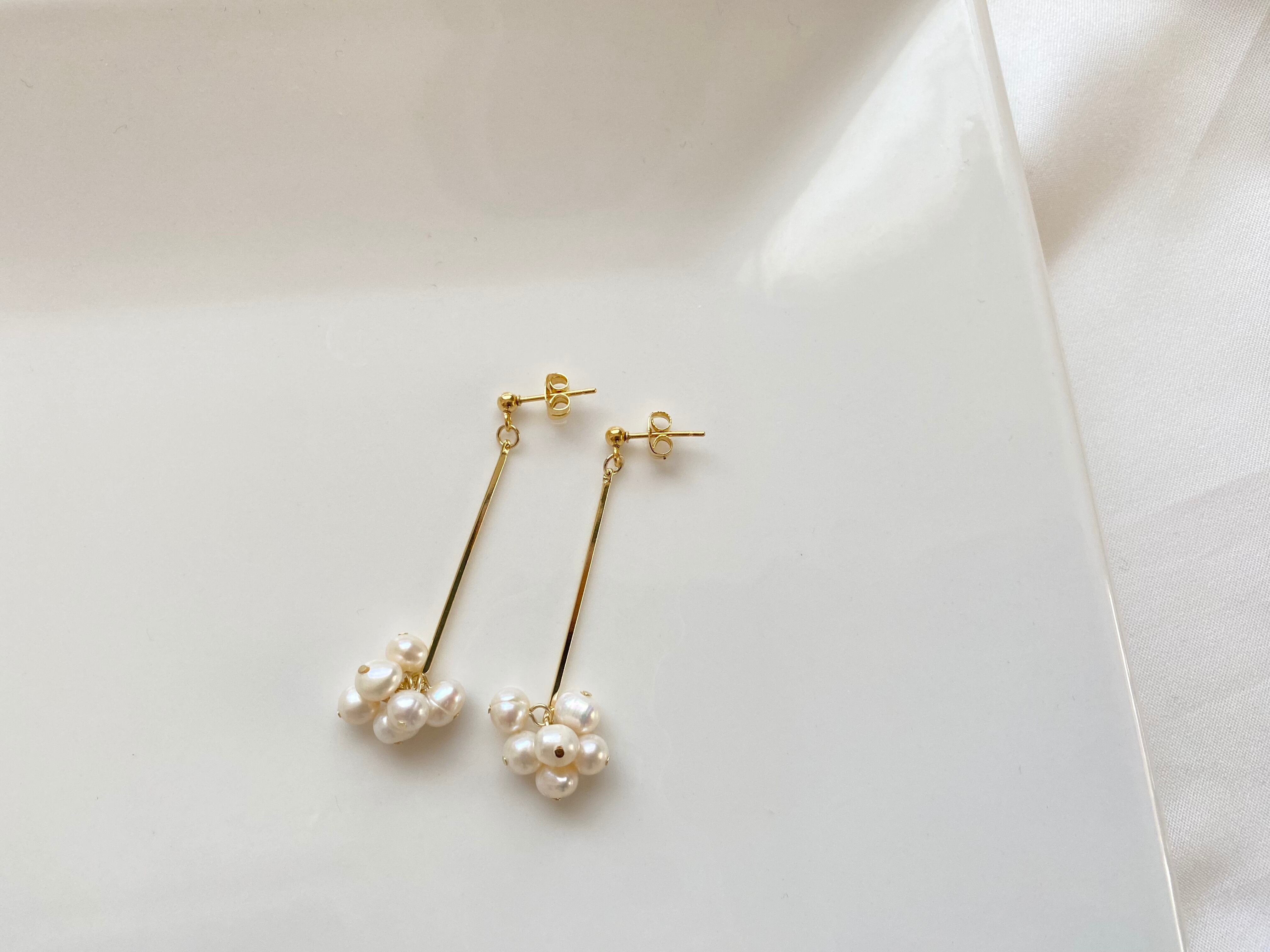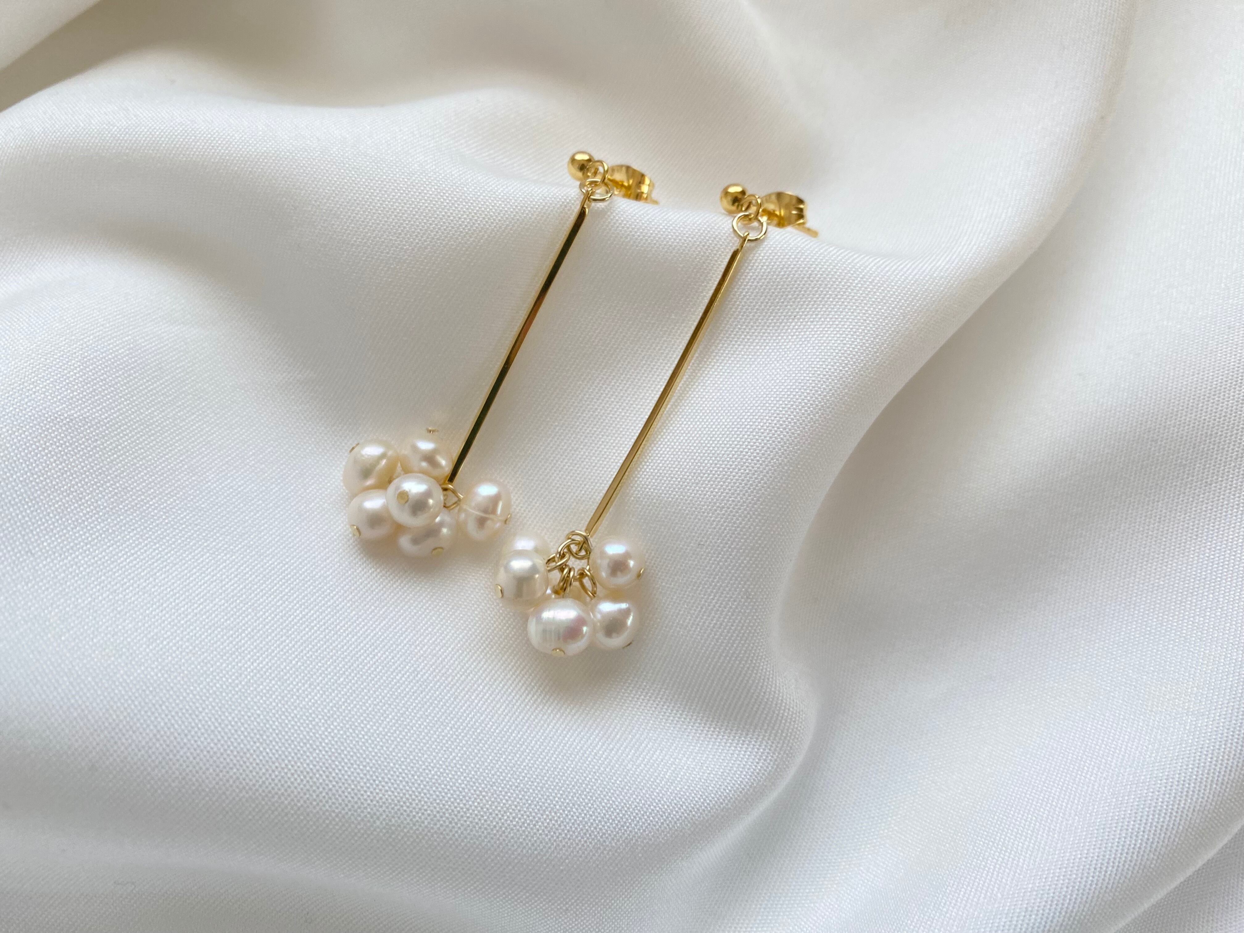 淡水パールをふんだんに使用したピアスです。