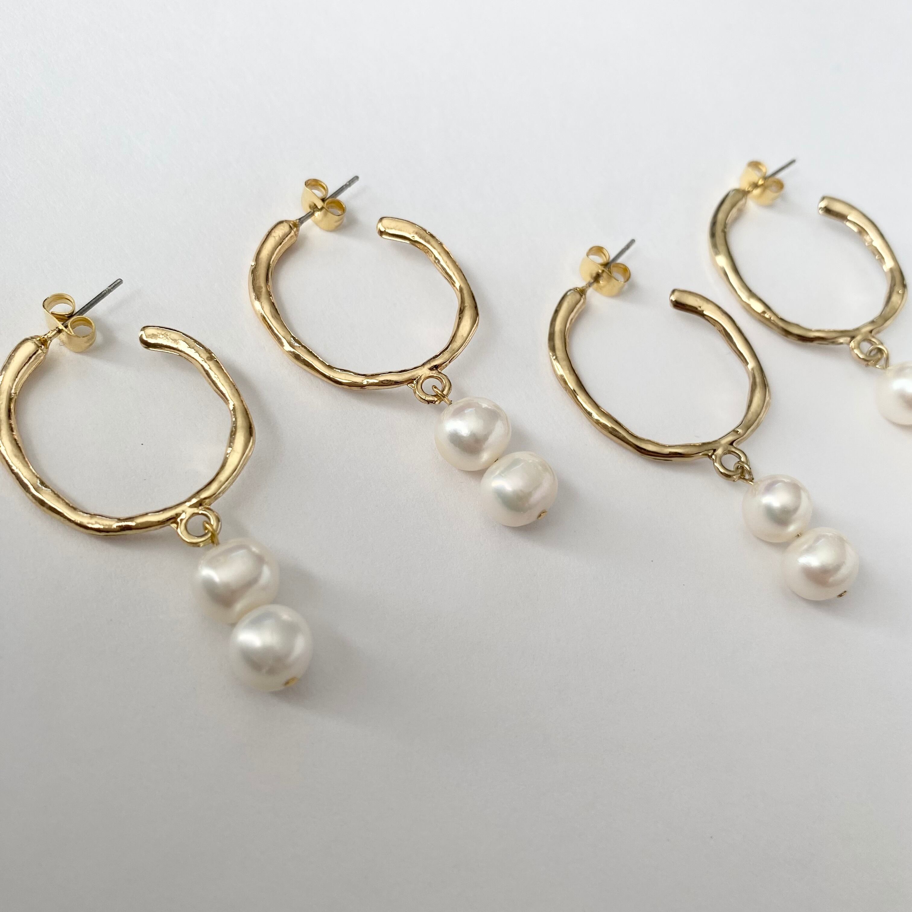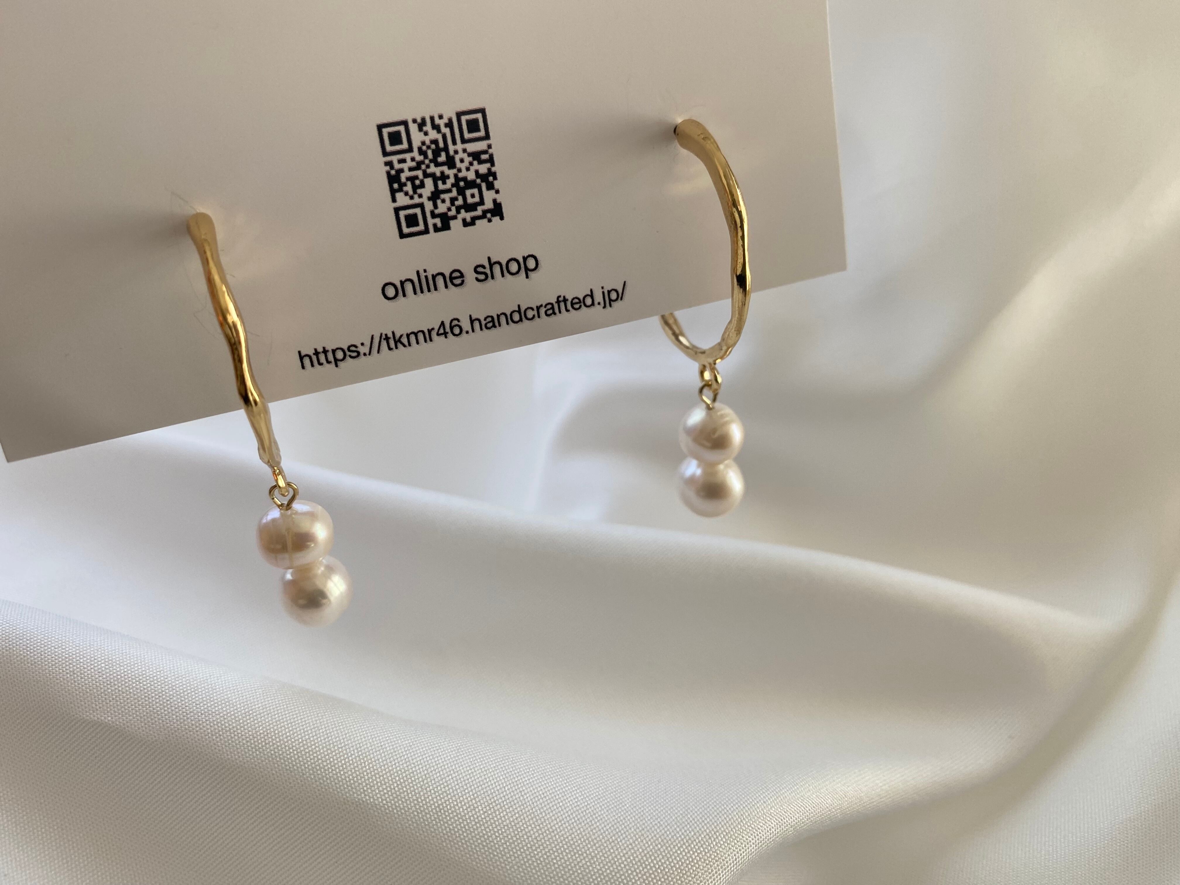大きめのフープピアスに淡水パールを使用した大人可愛いピアスです。