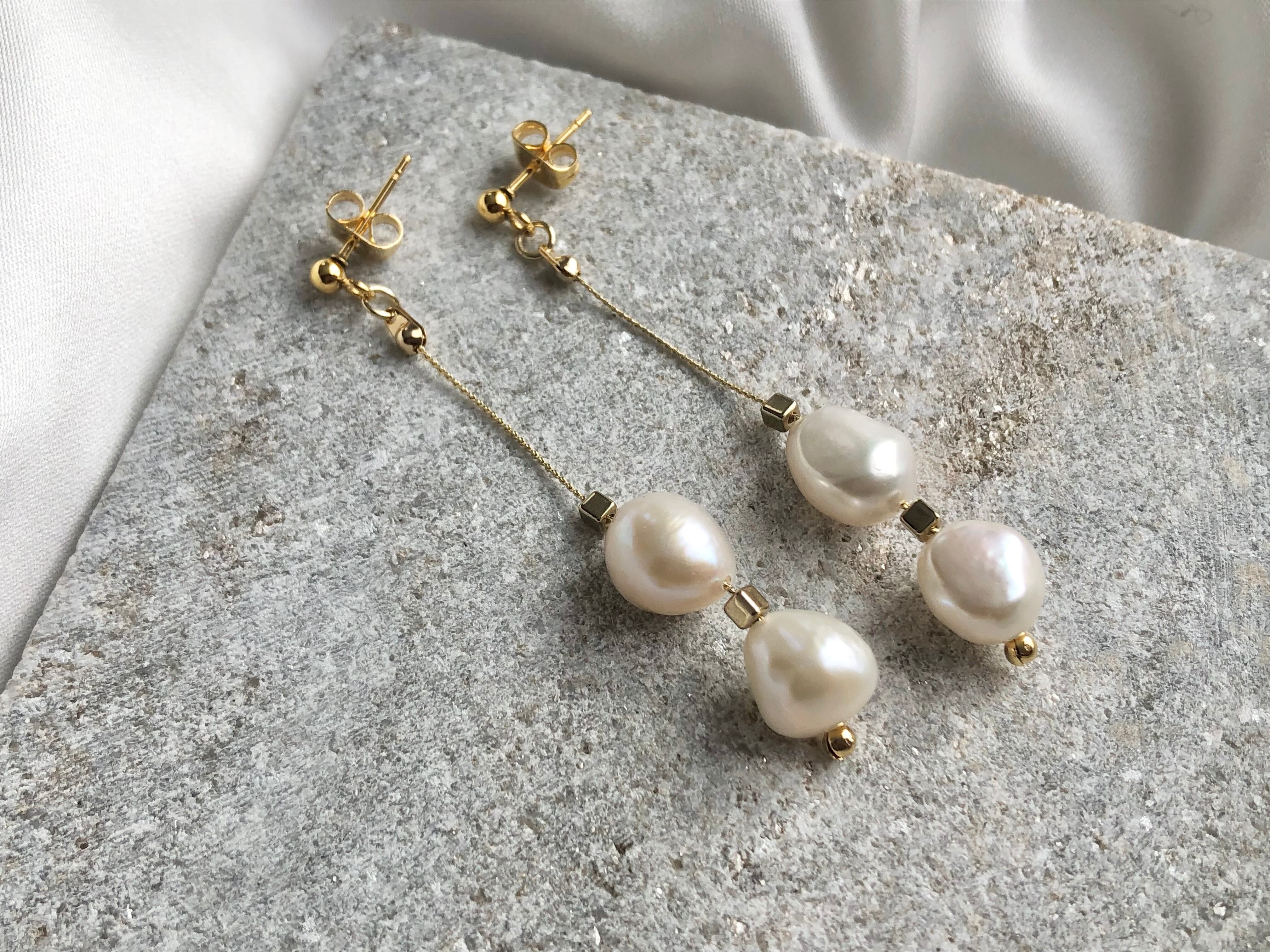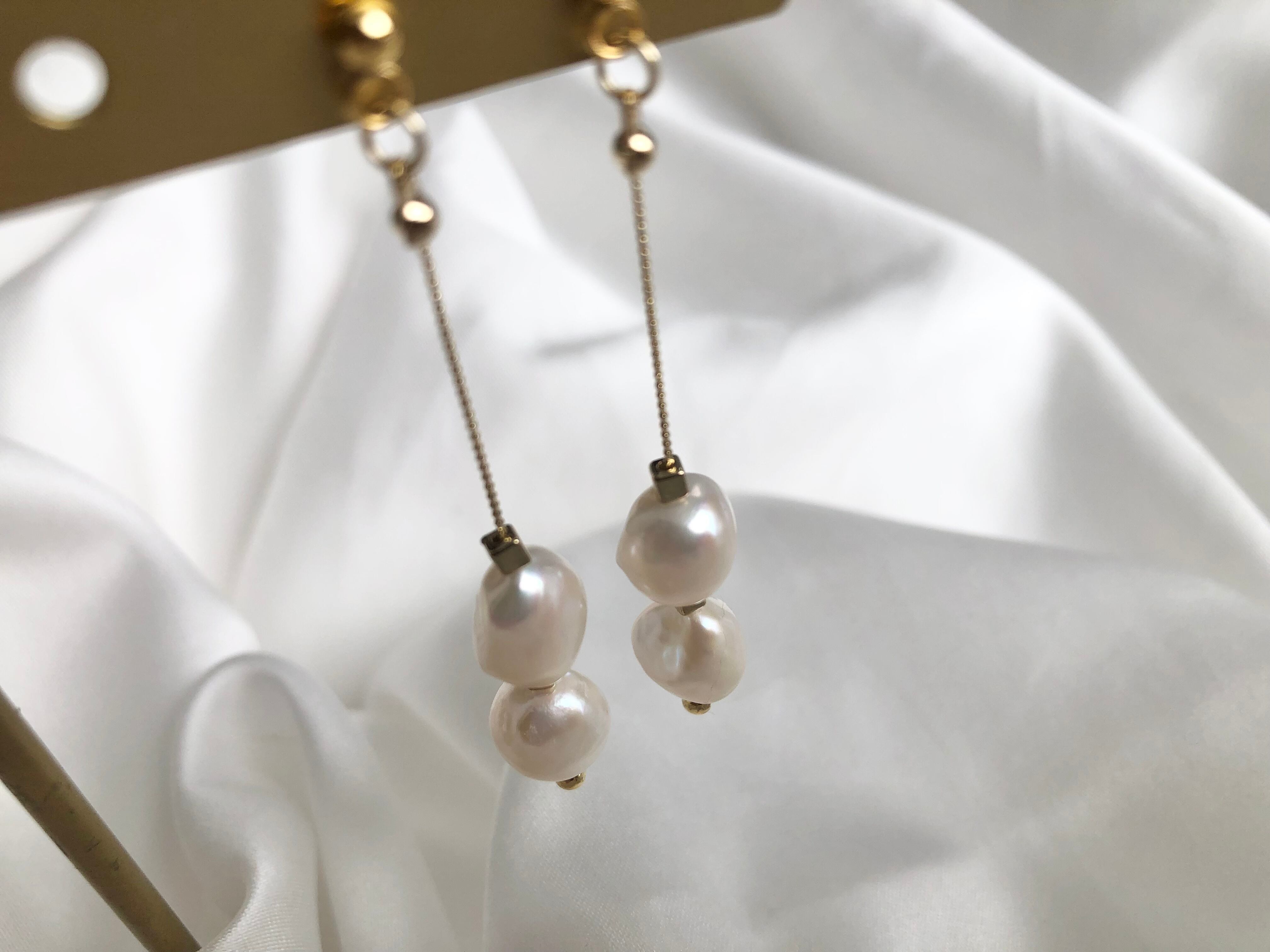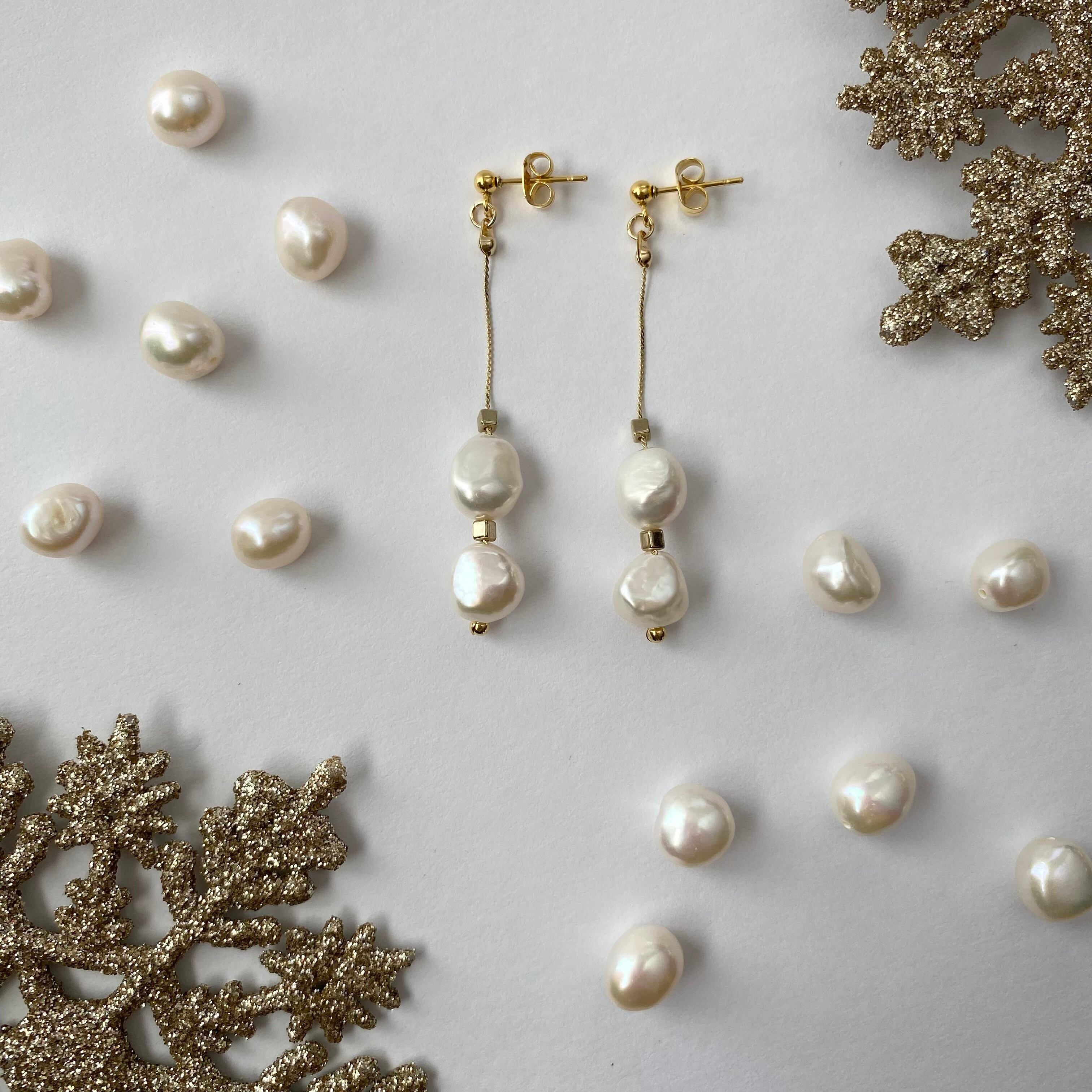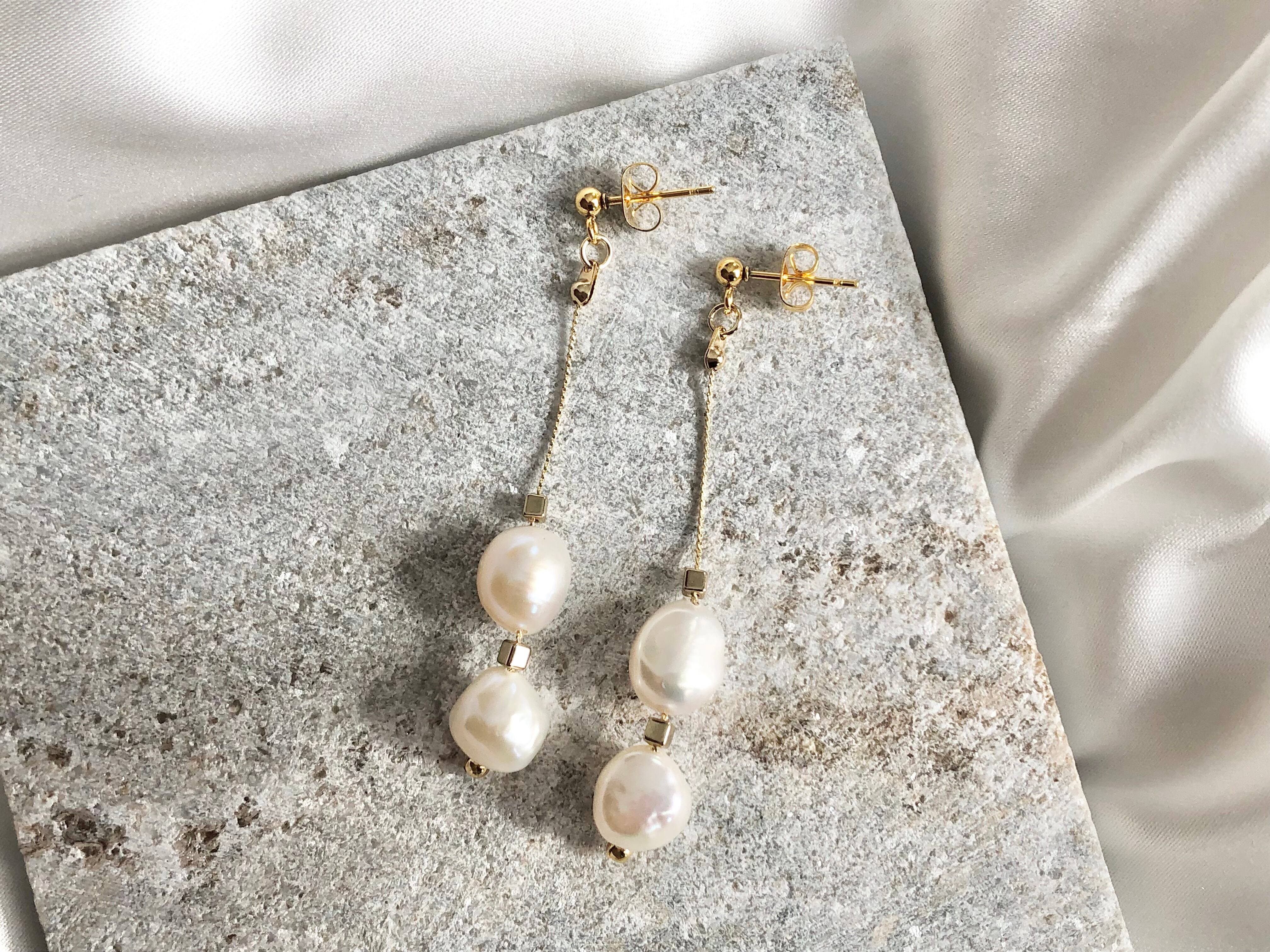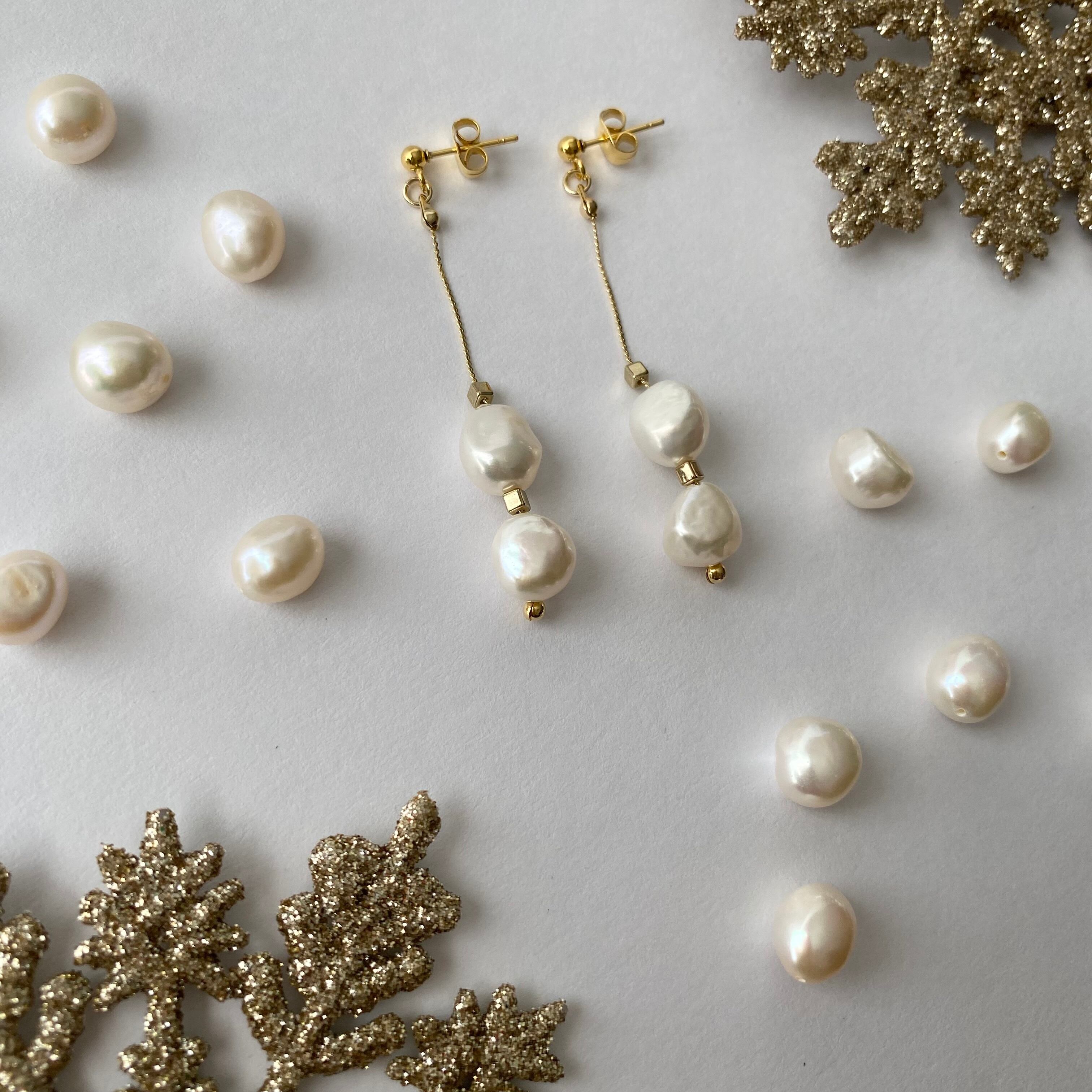 大きめのバロックパールを贅沢に2粒使用したアクセサリー。