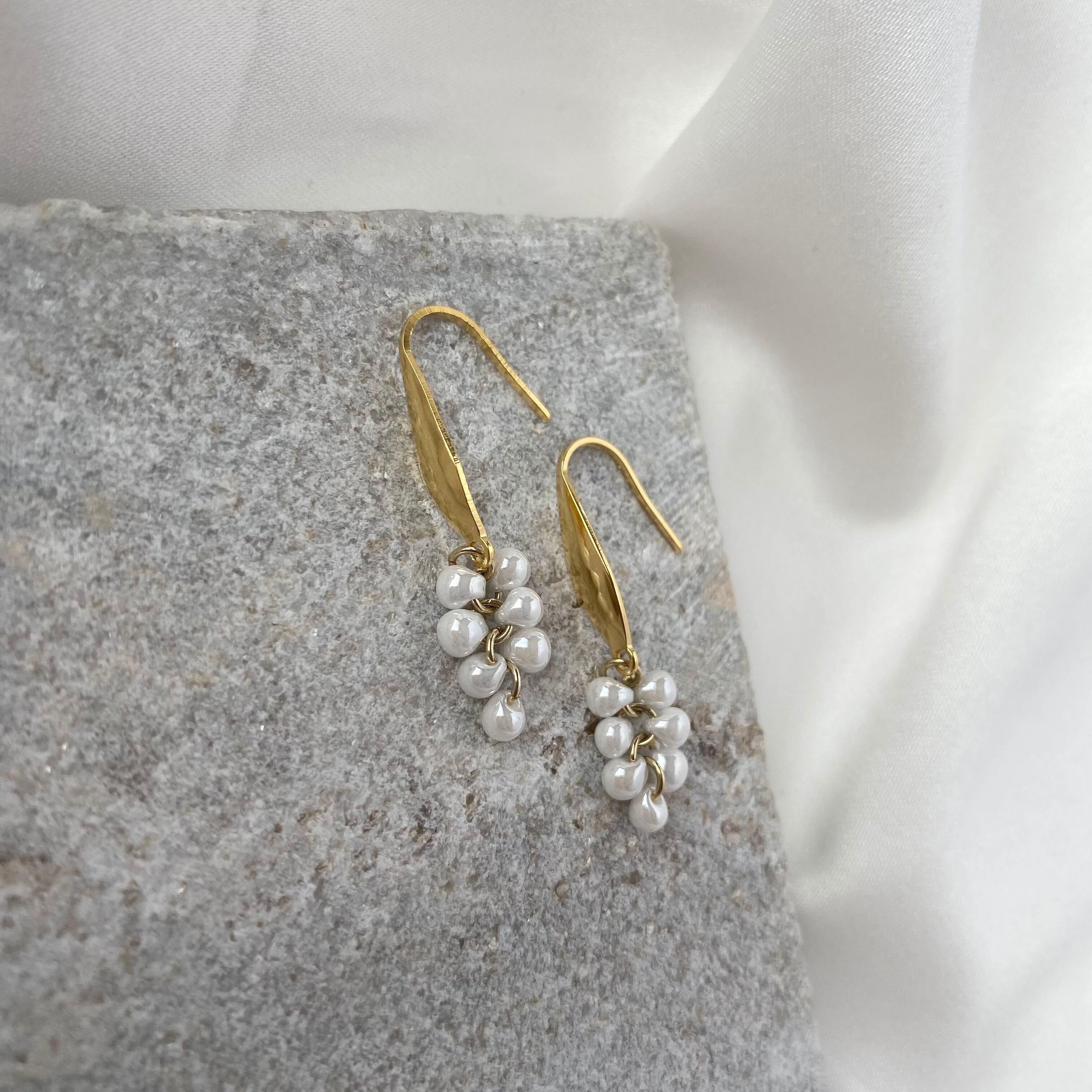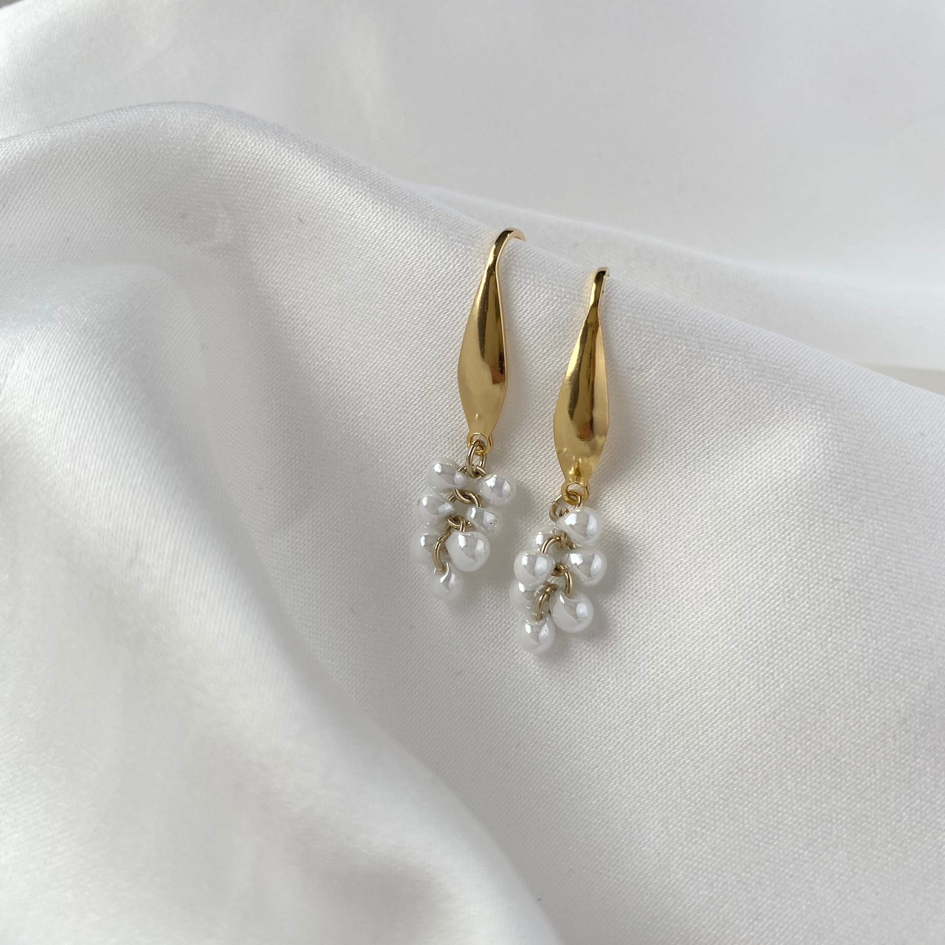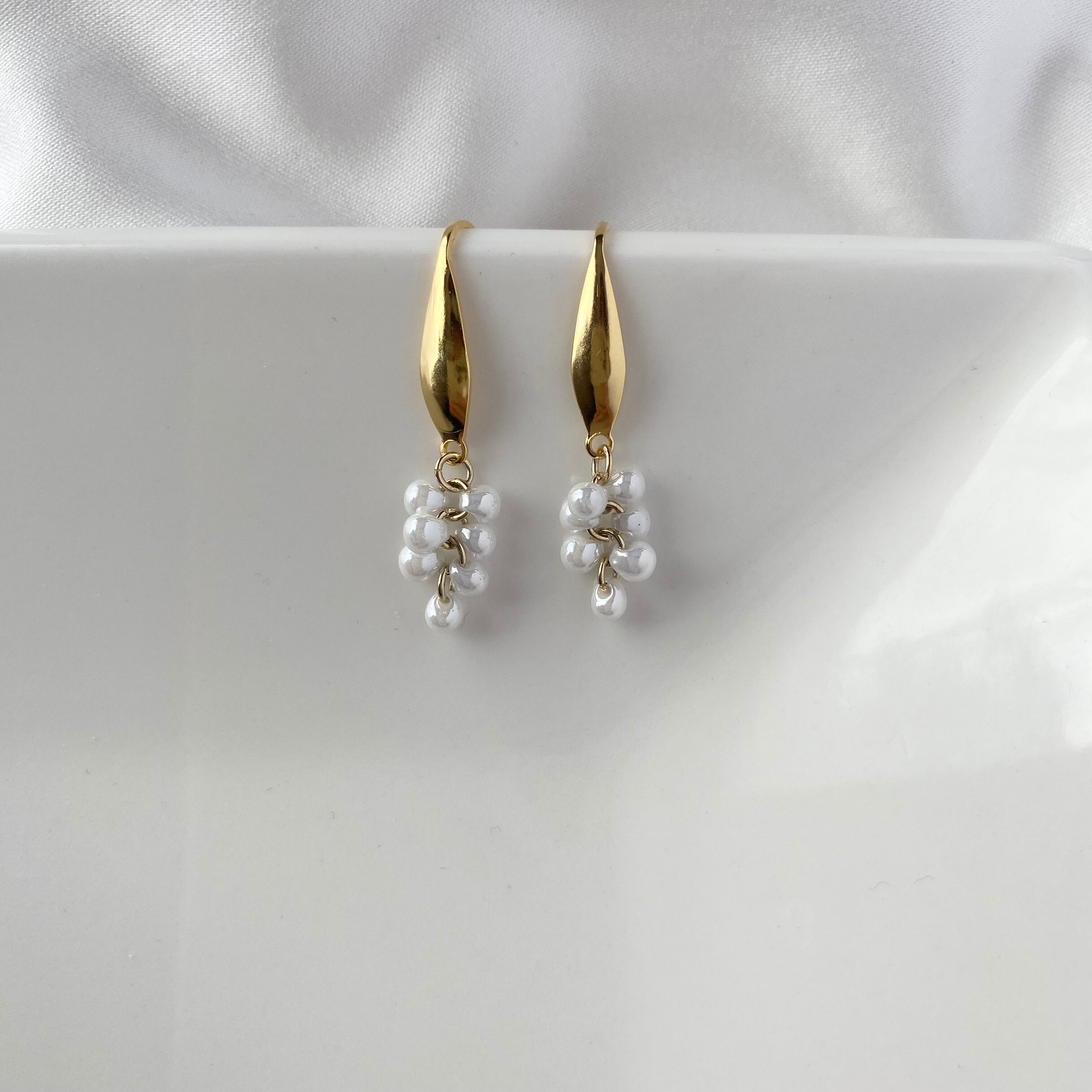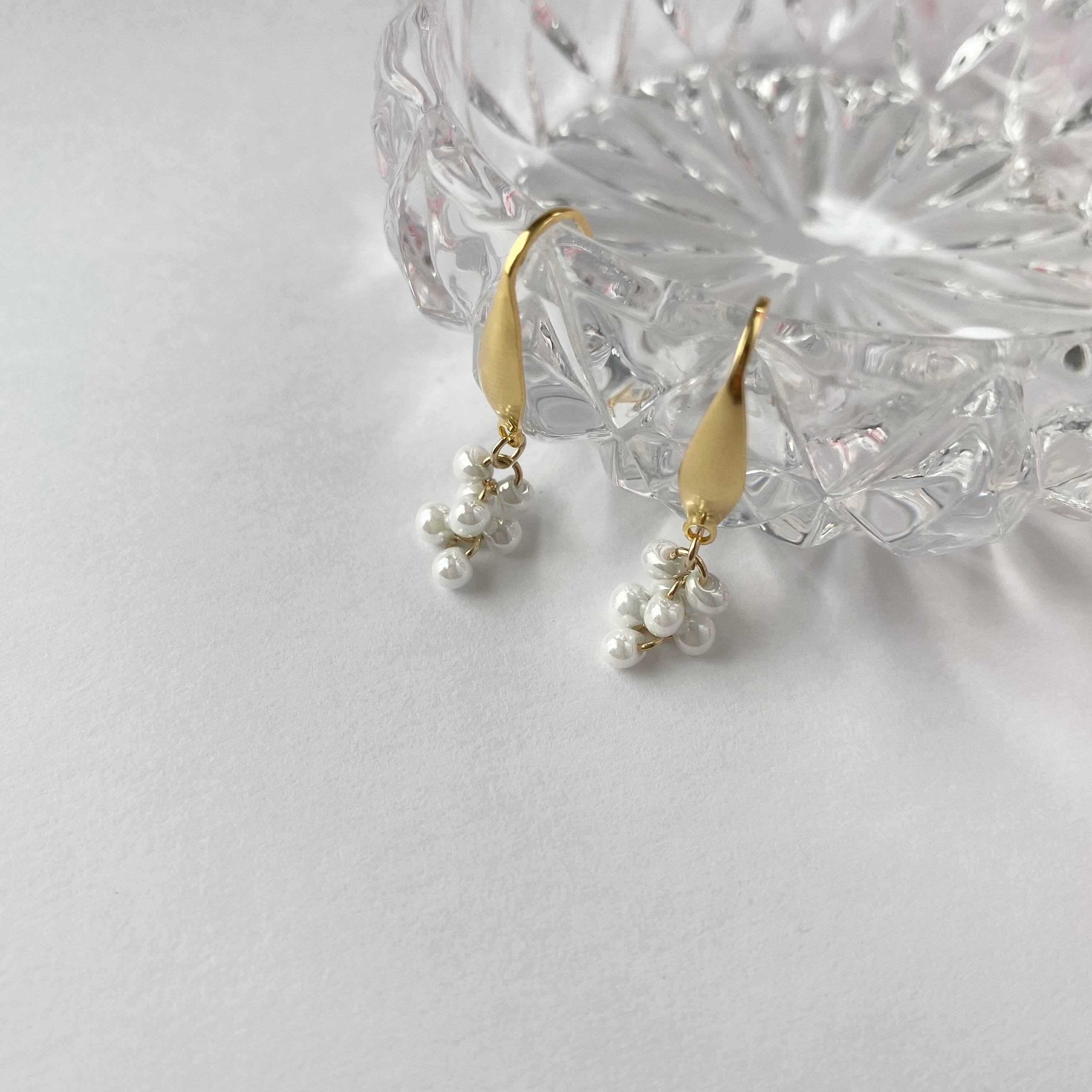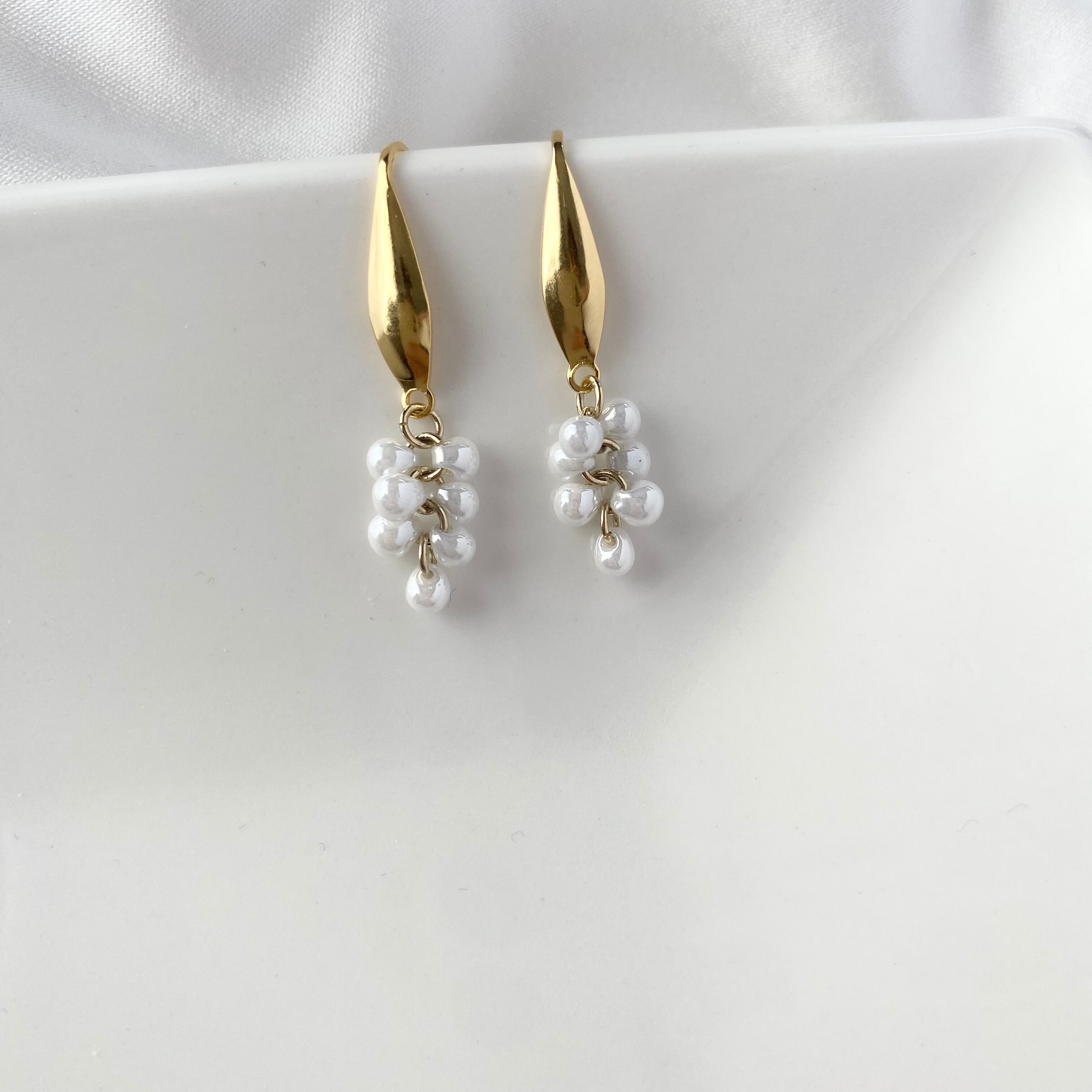 つぶつぶのドロップビーズがこぼれ落ちるようで、繊細なデザインのピアス。